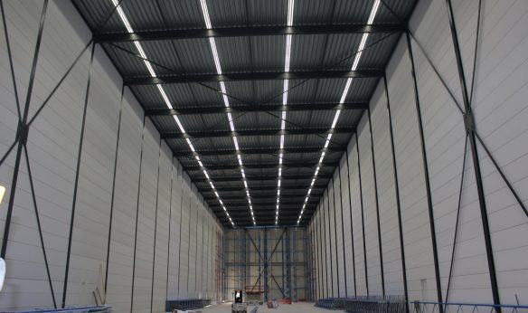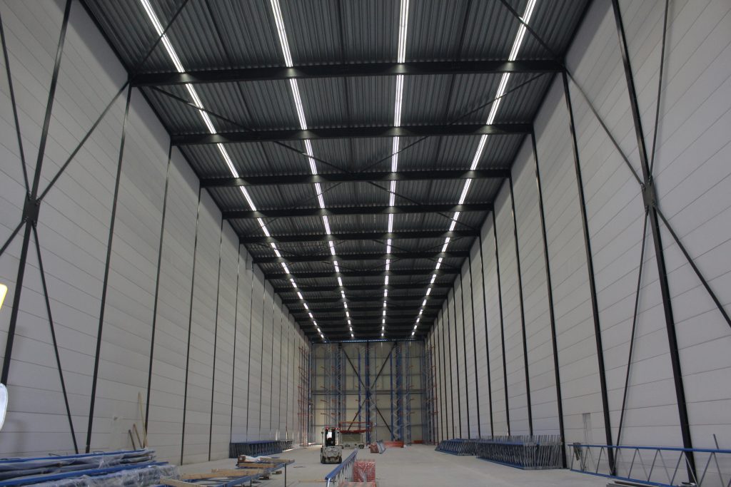 Together with our partner Kremer Installatietechniek BV in ‘s-Heerenberg an optimal light plan has been designed that achieves the highest light level between the high racks and equipment of Knapp. The choice quickly falls on the DATALUX.LT continuous line system. This system is placed between the rafters and the roof construction. This makes it possible to create a good light image while the user maintains maximum space up to the rafters. LUMINAID provided the engineering, production and delivery of the DATALUX light line system for Kremer. She installed and installed the light lines.