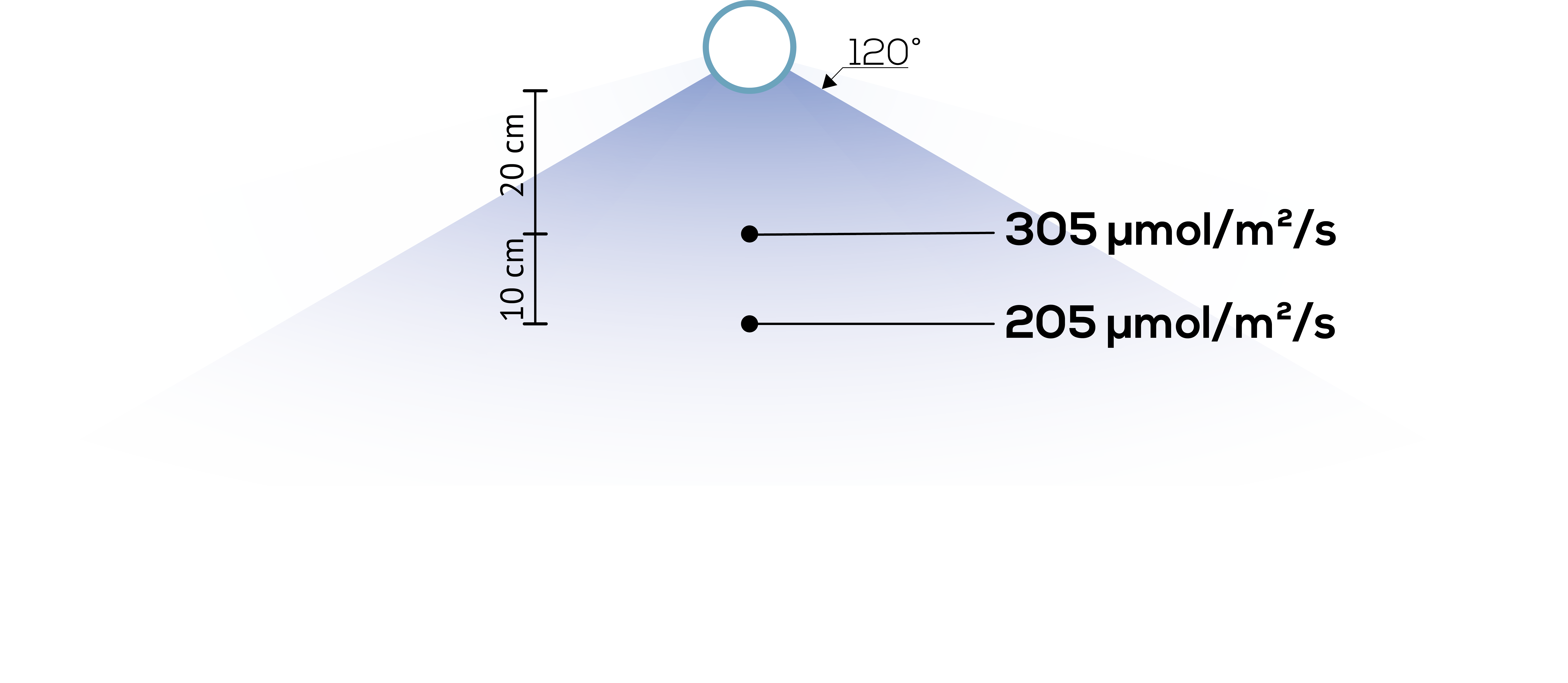 FLORALUX.spectris heeft een uitstralende lichtbundel van 120֯ Dit garandeert een volledig belicht bladerdek in de aardbeienteelt onder glas. Daarnaast schijnt de lichtbundel op de vruchten van ernaast gelegen rijen. FLORALUX.spectris levert een verbeterde strekking, alsmede vruchtontwikkeling in zowel een doorteelt- als doordrager teeltstrategieën. De uniek ronde behuizing van de lamp zorgt voor een diffuse verdeling van het licht. Hiermee wordt het licht gelijkmatig verdeelt over het gehele gewas. Dit beeld is vergelijkbaar met de combinatie diffuus glas en zonlicht.