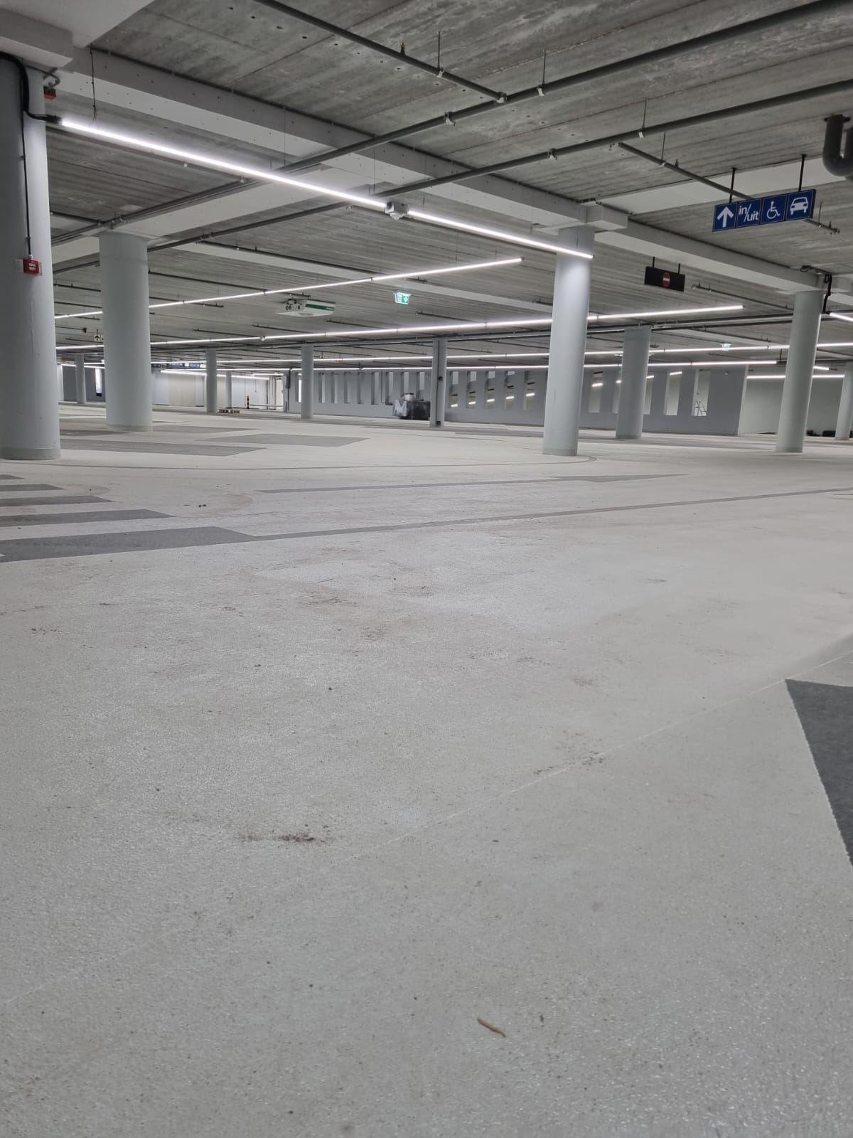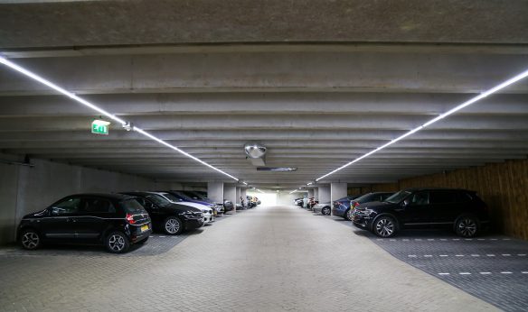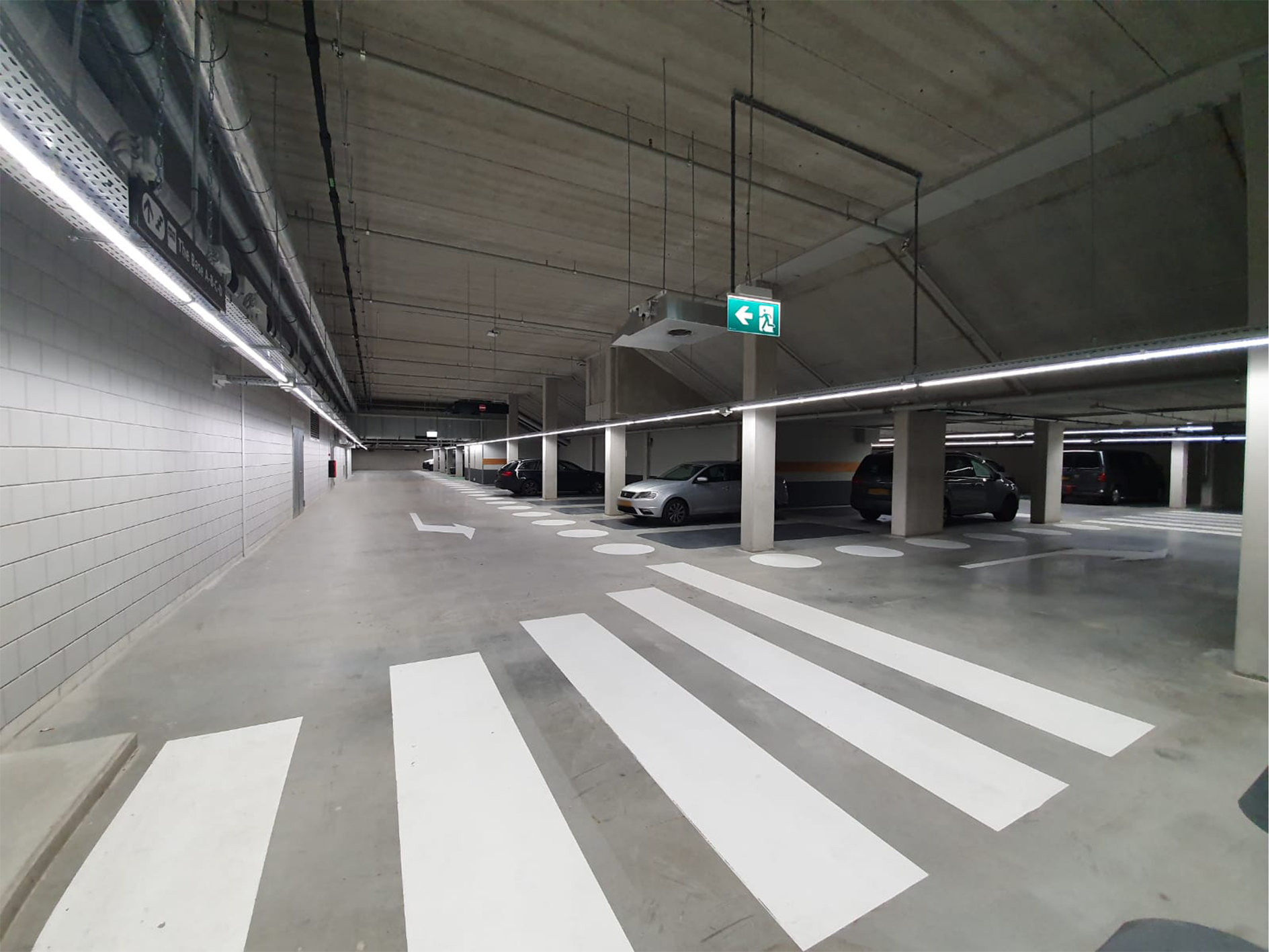Samen met technologiepartner VMA heeft LUMINAID de verlichting van deze parking verzorgt, inclusief montage van de lichtlijnen.
