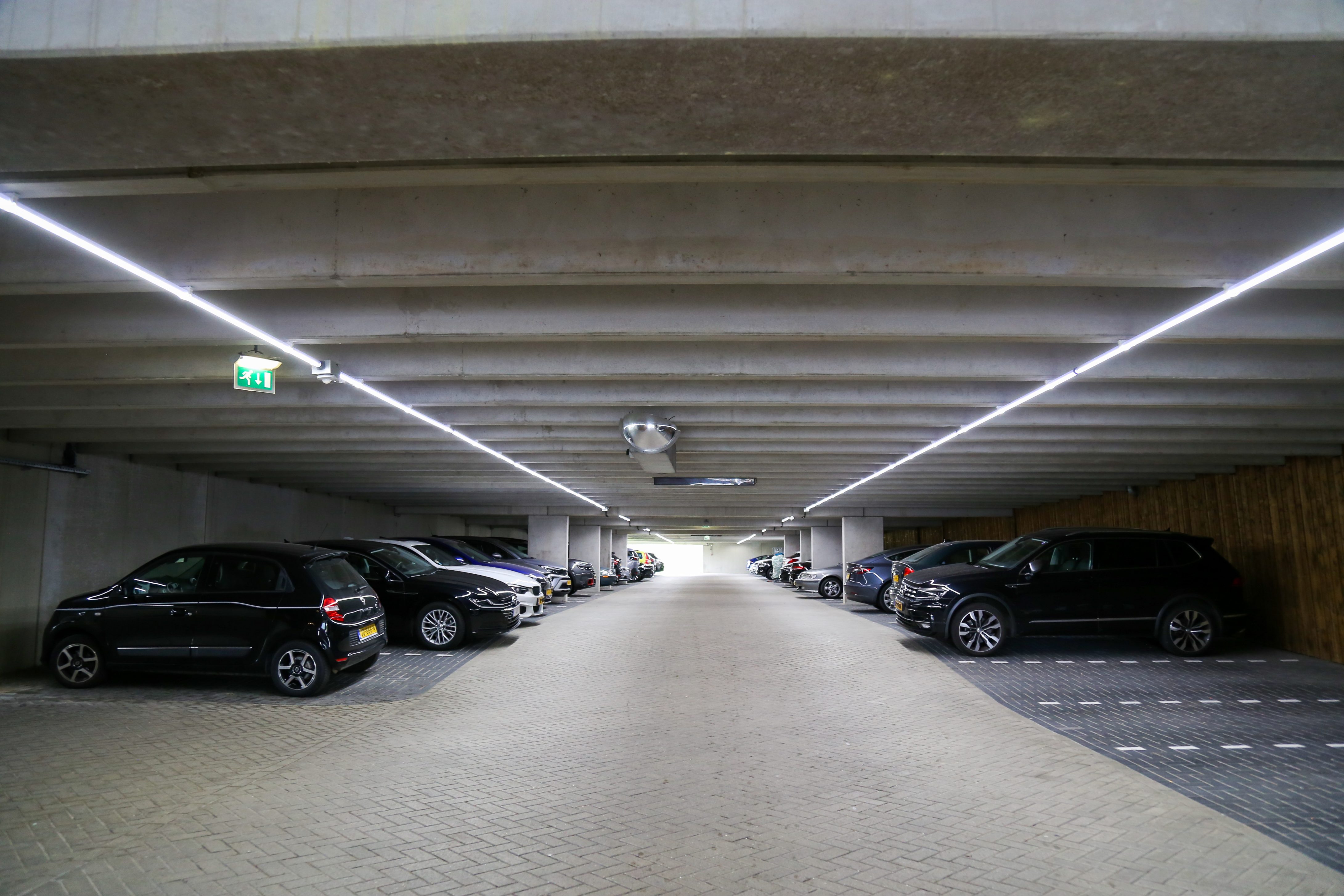 De DATALUX armaturen zijn erg compact en vallen zelfs bij het lage plafond van een parkeergarage nauwelijks op. Doordat het licht volledig uitgespreid wordt over de lengte van de lichtlijnen is er geen betere gelijkmatigheid mogelijk. Door de compacte vorm en continue lijn is het ook nog eens vandaalbestendig te monteren. Er zijn verschillende bewegingsdetectoren voorzien waardoor er naar een lagere lichtstand gestuurd wordt als er geen personen aanwezig zijn. Het resultaat is een laag energiebeverbruik maar veel belangrijker nog een veilige parkeerbelevenis.