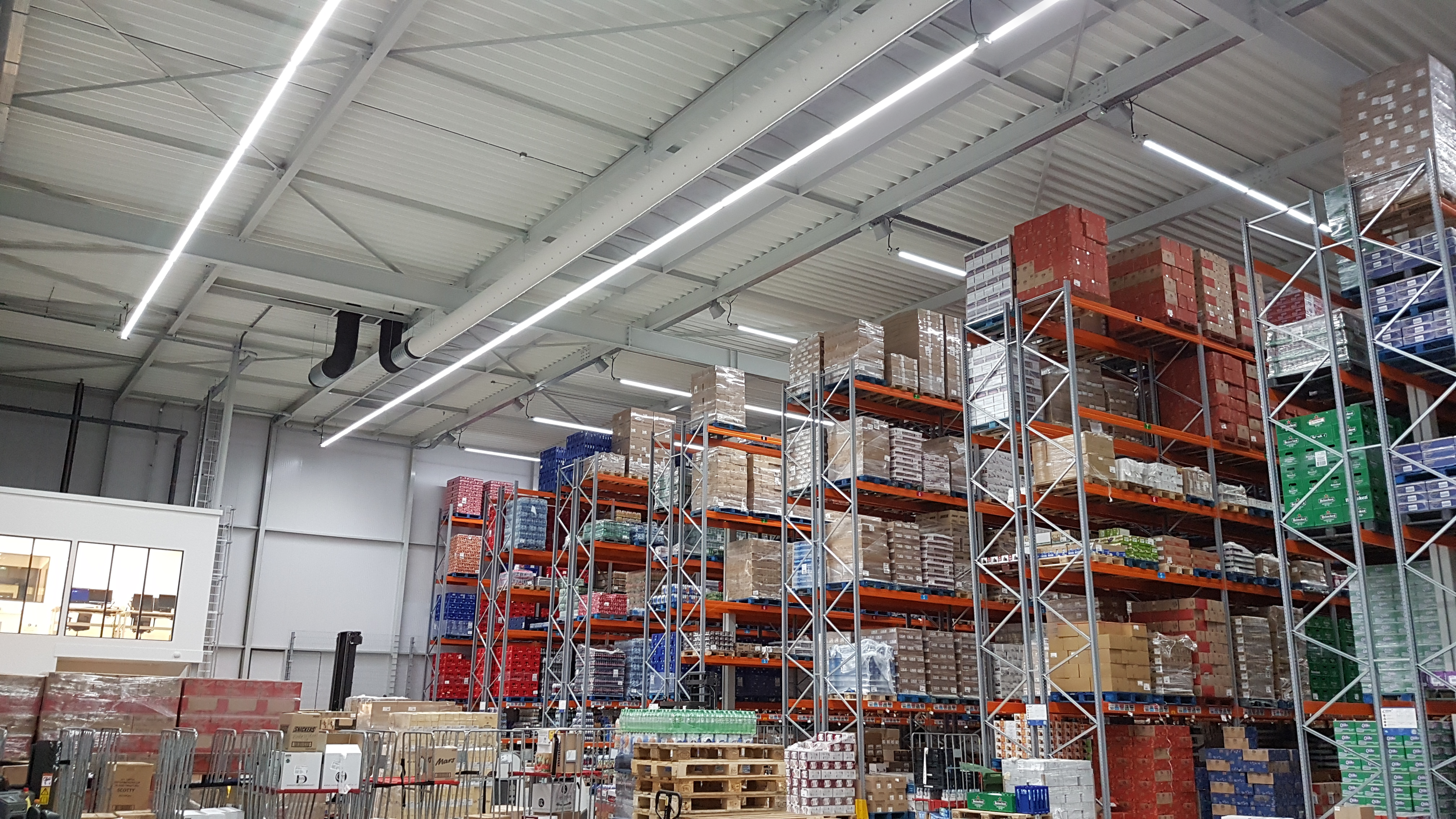 Lijnverlichting voor Warehouse & Logistiek. Lage investerings- en operationele kosten, gelijkmatig licht met de hoogste duurzame bijdrage.